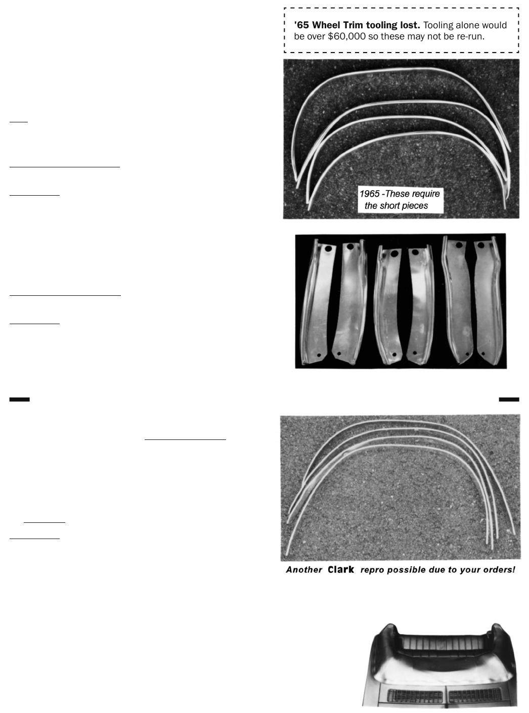 '65 Wheel Trim tooling lost. Tooling alone would