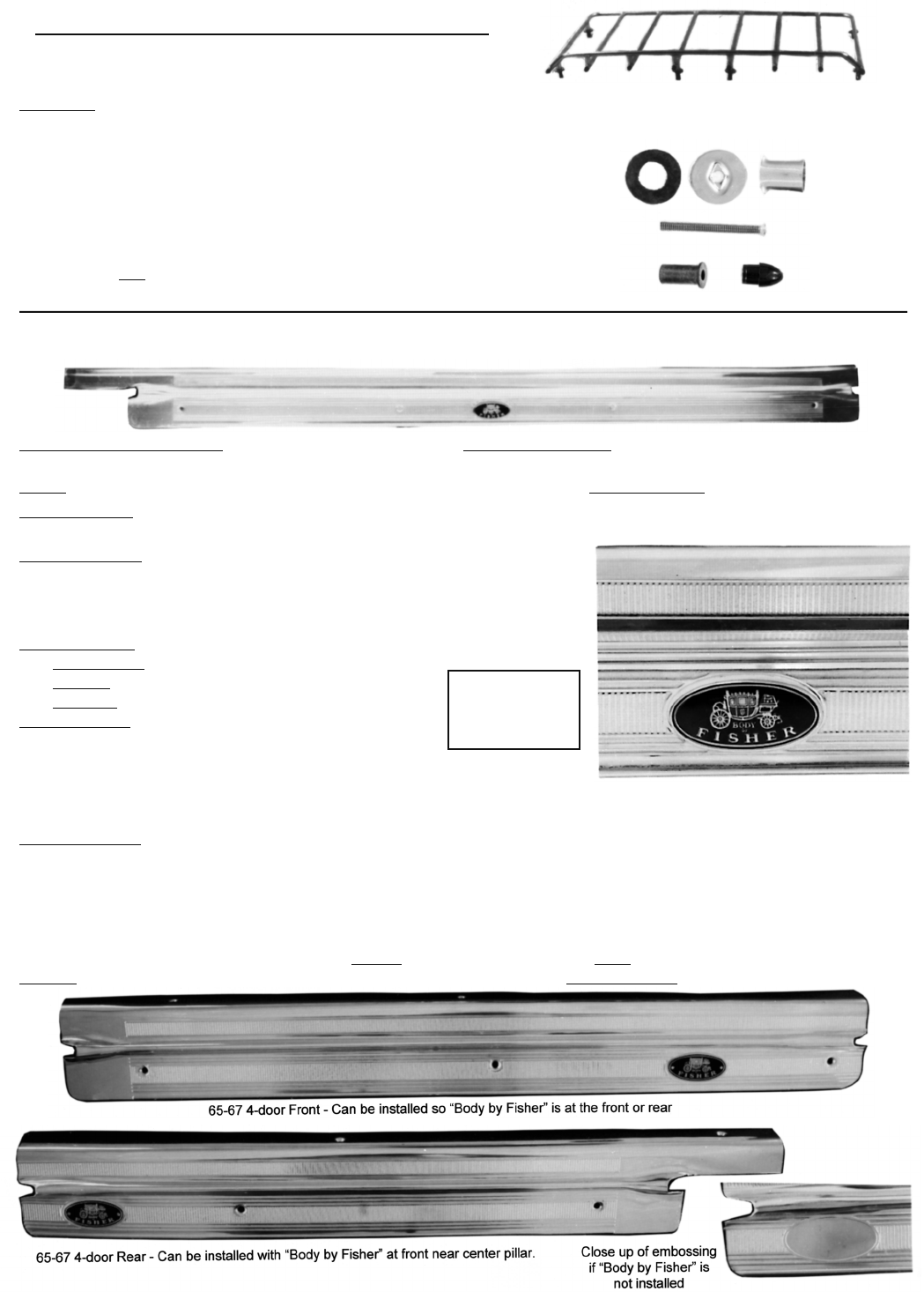 to put caulking where the old holes are. Order "Body by Fisher" emblems and screws separately.