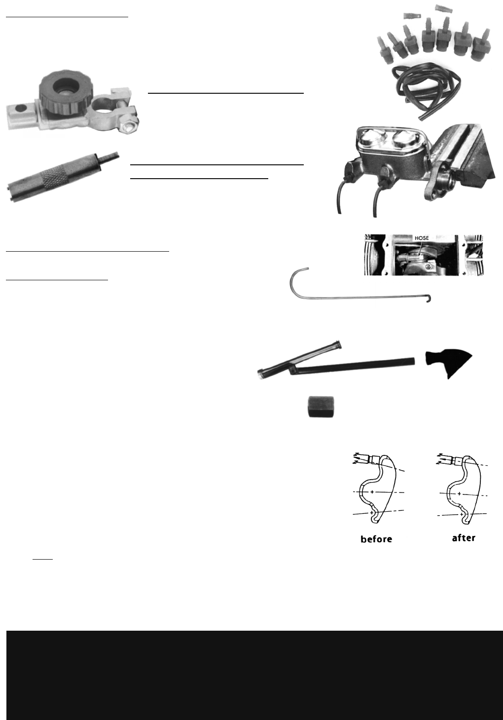 dual master cylinders. This set gives you plastic screw adaptors and rubber hoses for use on all 1962-69