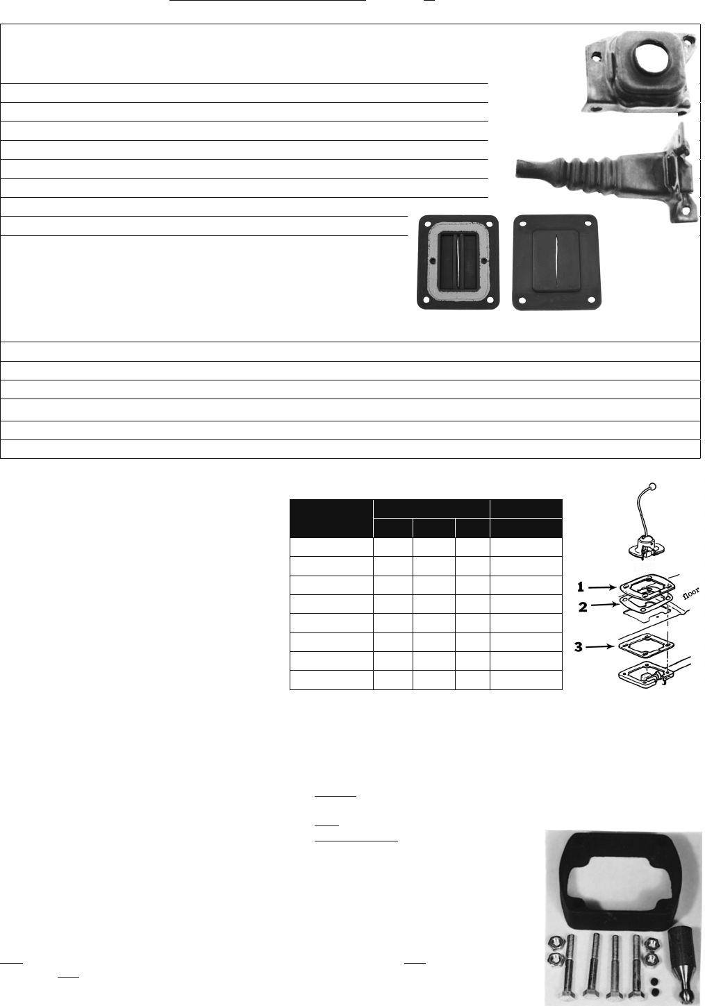 shim pack for the shift tower and floor pan.