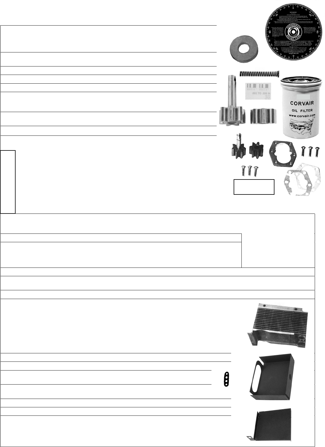 iWARNING: Products on this page can expose you to a chemical, which is known to the St ate of California to cause cancer or reproductive harm. **For more information go to www.P65Warnings.ca.gov**ENGINE BLOCK(refer to picture, page 9) ALUMINUM - SOLID PULLEY: DISCONTINUED7" DEGREE WHEEL - Heavy gauge aluminum with instructions for finding T.D.C. for super accurate engine set-ups as discussed in "How to Hot Rod Corvair Engines". C2825 8oz. A/C & SMOG PULLEY - "Add-On" SECOND PULLEY: See "NOS" on website and page 34744. BOLT: Holds pulley to crankshaft - 1960-69 ALL (exc. A/C & Smog) "Gr 8" C6106 4 oz. A/C & Smog C177OR 4 oz.45. WASHER - SPECIAL: C1135 4 oz. 46. SEAL: 1960-69 REGULAR Seal C483 4 oz. VITON Seal C483V 4 oz.47. REAR HOUSING: Can be used on 1960-69. May vary some (see also USED parts) C1751 Disc. 8 lbs.48. REAR MOTOR MOUNT BRACKET: USED ONLY 1960-63 Cars & Vans CU125 5 lbs. Also see "NOS" on website 1964 Cars only CU126 5 lbs. 1965-69 Cars CU2601UZ 5 lbs.49. REAR SKID PLATE: USED 1960-63 CU127 1 lb. USED 1964-69 CU1792UZ 1 lb. 50. OIL FILTERS - CLARK OIL FILTERS are the BEST. See page 27B for more info. Clark Oil Filters C47C 1 lb.51. STOCK OIL PUMP GEAR KIT: See page 27C 1960-69 ALL C1395T 1 lb. A quality pump for normal driving. Original factory style pump. Includes spring, gaskets & plasti-gage. Hi-Volume Oil Pumps A Hi-volume oil pump (approx. 1/3 more oil) assures that plenty of oil gets to all parts of the engine under all condit ions. Stock is fine for most cars. We offer 2 kits - Also order rear housing gaskets C482 & C483A. Hi -Volume: (Shown to the right) Spacer, oversize gears, bolts, gaskets, and instructions (use old cover). 1960-69 ALL C5053 1 lb. Top Quality Pro-Flow: More info see page 27C. This is the kit for the person who wants the best. All parts are machined to more accurate tolerances; includes a new cover with countersunk pilot holes to eliminate any chance of pump gear wobble. Kit includes: spacer, oversize gears, idler shaft, special pump cover, bolts, gaskets, plastigage. Skid Plate Must be Modified. 1960-69 ALL C3942 1 lb. 6 oz.52. GASKET - OIL PUMP COVER: 1960-69 ALL .008 C1009A 1 oz. .003 C1009C 1 oz. SET OF 1 ea. = C1009E 4 oz. .010 C1009B 1 oz. .005 C1009D 1 oz. (includes plastigage) COVER: Replace that one worn by the gears. Check your oil pump cover when rebuilding to see if it has been grooved by the gears. 54. BOLTS - OIL PUMP COVER: Sold Set of 6 C3530 4 oz./set55. OIL PRESSURE REGULATOR: Gasket - 1960-69 C1801 1 oz. Spring - 1960-69 C1799 2 oz. High Pressure Spring - 1960-69: Ups the oil pressure to approximately 60 lbs. C7646 2 oz. Valve - 1960-69 C1800 2 oz. 56. CAP - OIL PRESSURE REGULATOR: 1960-69 ALL C4473 2 oz. 57. OIL COOLER BOLT: 2 Plate Cooler C6810 2 oz. 8 Plate Cooler C3708 4 oz. Finned Cooler C3708 4 oz. 4 Plat e Cooler C6811 4 oz. 12 Plate Cooler C3709 4 oz.58. GASKET: (GM one shown is upside down) Rear Housing to Block Gasket - 1960-69 C482 4 oz.59. OIL COOLERS - 12 plate can be used on all cars, but you will have to make a top cover and fabricate the bottom shroud. EXTERNAL OIL COOLER: See Page 31 USED Oil Coolers: See page 347 TOP OIL COOLER COVERS: See page 347 *SHROUDS: Reproduction - End of 12 Plate Oil Cooler. Improves air flow thru cooler. Original on A/C and smog cars. Great for all 12 plate coolers. Lef t end C2605R 4 oz. Right end C 4674 4 oz. * SHROUDS: Same design - For all 8 plate coolers. Lef t end Discontinued Right end C4677 4 oz. 60. SEALS - OIL COOLER: Sold Set of 2. 1960-69 Viton C123C 2 oz. 61. GASKET - OIL COOLER ADAPTOR TO BLOCK: 1960-69 ALL C680 1 oz. 62. ADAPTOR - OIL COOLER TO BLOCK: 1960-69 ALL USED CU3807 4 oz. BOLTS - OIL COOLER ADAPTOR TO ENGINE BLOCK: Sold Set of 2 bolts. C5115 4 oz./set63. REAR BLOCK STUDS: .003 O.S. for loose studs - for stripped holes see inserts page 174 . See "NOS" on website. REAR BLOCK STUDS - NUTS & WASHERS: Set of 4 for the rear block studs C7465 2 oz./set 63 1/2 . SHROUD: See USED on page 347 & "NOS" on website.64. PUSH TUBE SEALS: See page 465. PUSH TUBE: 1960-69 ALL NEW C326 4 oz. (Seldom Have) USED PUSH ROD TUBES PERFECT = Cleaned & inspected. No dents, no dings, no deep scratches, "almost new". CU3061 4 oz. GOOD = Minor dings, deeper scratches, still straight & true. May be oily. CU85 4 oz. OK = Bigger dents or dings, deep scratches but still usable. CU1268 4 oz.PICTURE #We now offer the aluminum cover that we use with our high volume kits. Will fit with no modification. Requires longer bolts. C1008A 6 oz.Longer bolts - Set C3531 4 oz.$$ SaverNOTE: To Prime the Corvair Oil Pump, Rotate Clockwise$$ Saver Kit12C1135Bigger Photos page 27CC2605RC4674C2825C47CC1395T