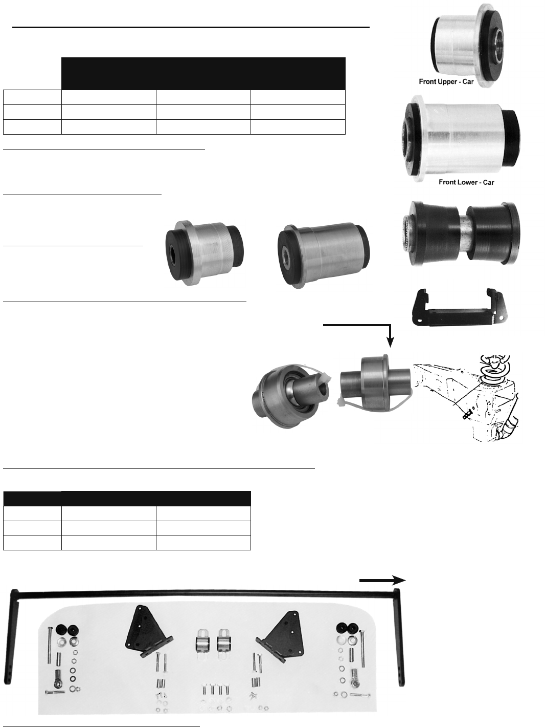 These bearing units replace the original rubber bushings at the front end & will lead to a stiffer but more controlled ride.