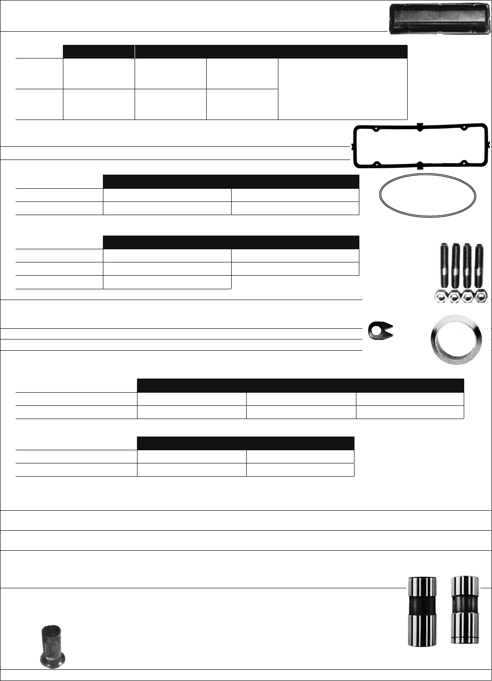 Manifolds – Exhaust (“logs”): Come LESS studs. Manifold kits – See page 32.