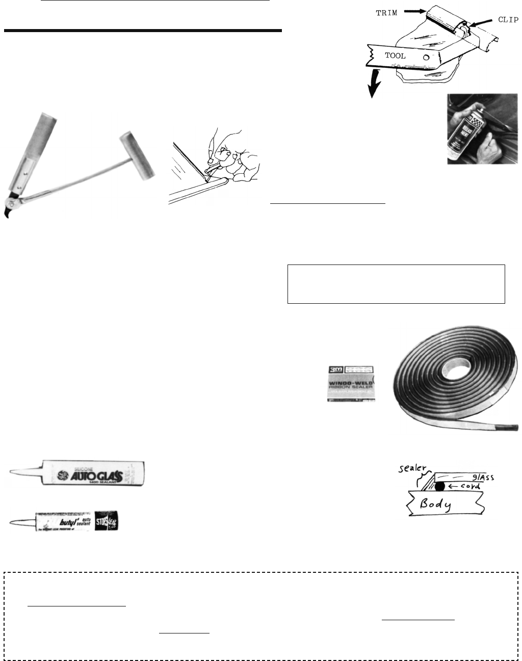 INSTRUCTIONS FOR REMOVAL & REPLACEMENT OF 1965-69 WINDSHIELDS: Order first if you are unsure if you should try. C7991 1 oz.