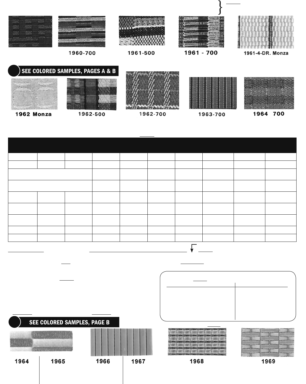 We have a LIMITED quantity of these original cloth materials that were used on 1960-64 500’s and 700’s. These make dramatic looking interiors when the colors are