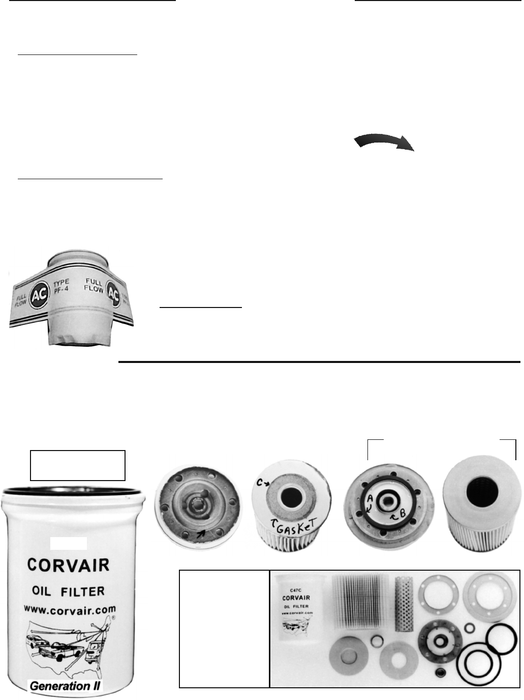 filter. This way the rubber seal on the end plate can make accurate contact with the steel end of the element insuring a positive seal. See photos. (Some suppliers have