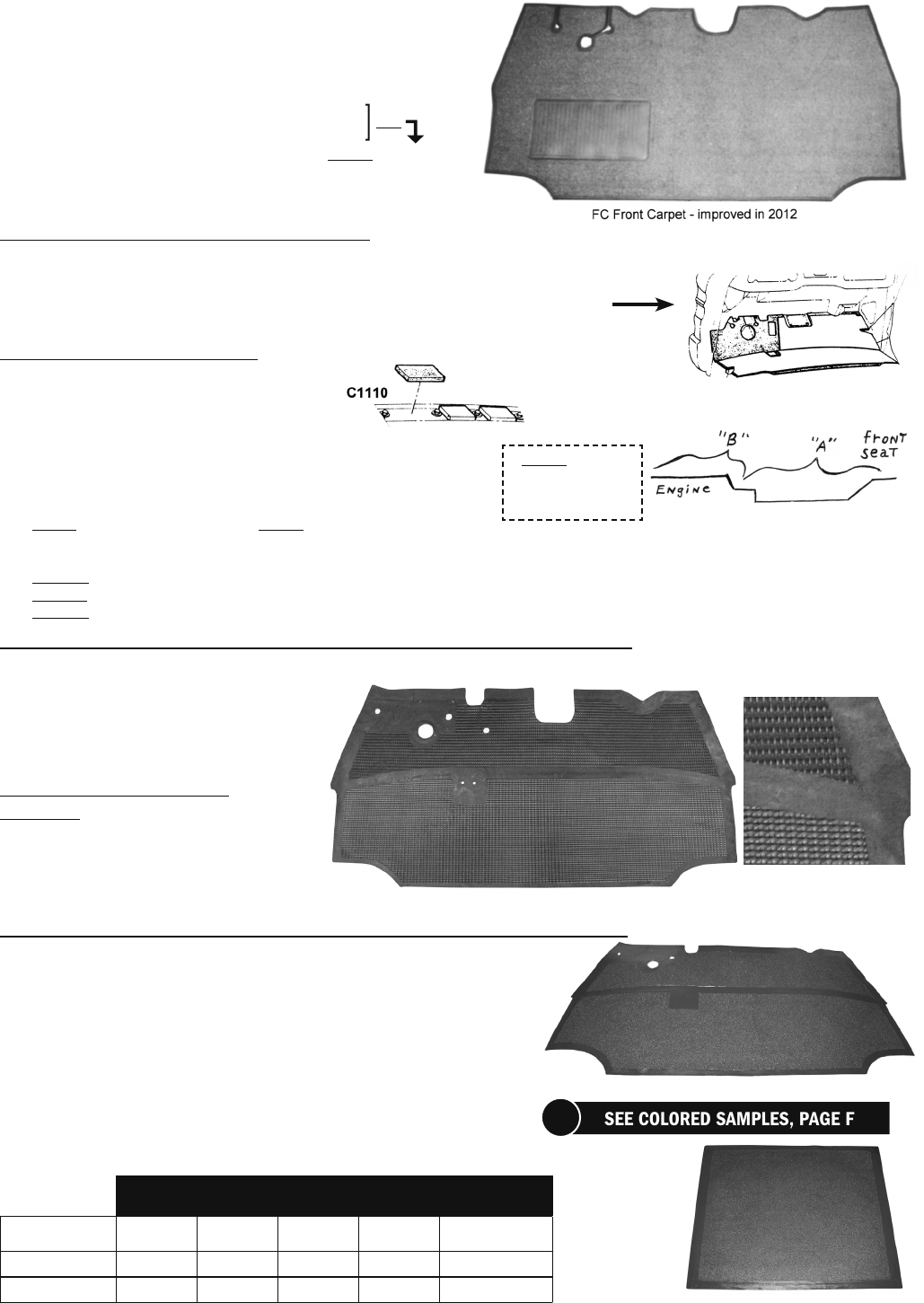 page 279. Cut pile & Tuxedo priced higher – see price list. 63-65 w/floor shifter must cut
