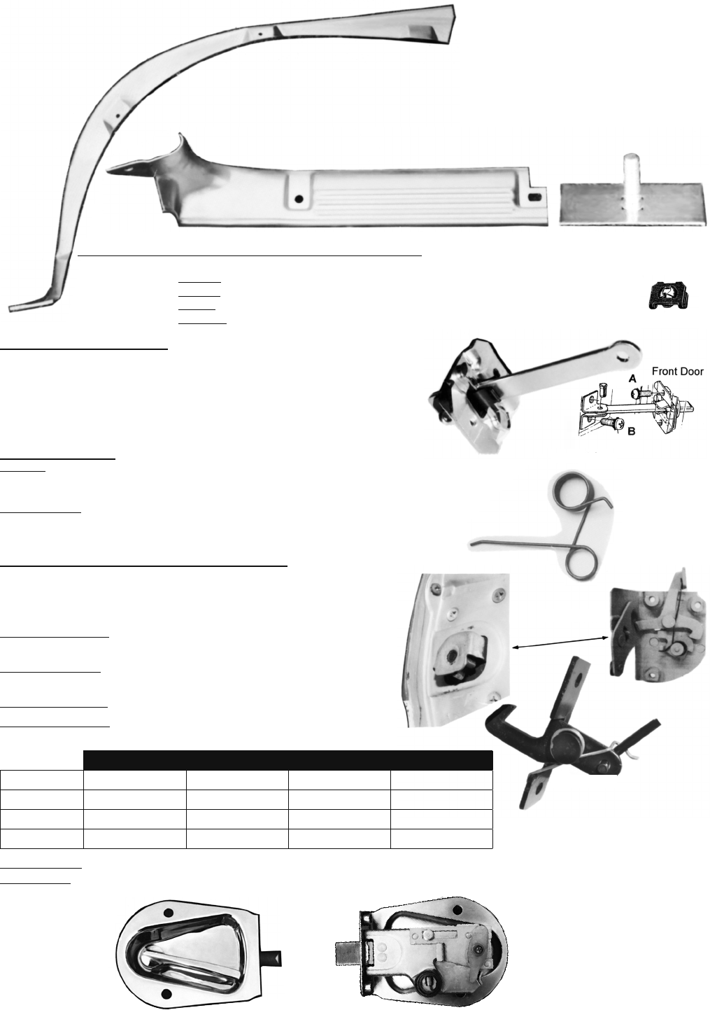 iWARNING: Products on this page can expose you to a chemical, which is known to the St ate of California to cause cancer or reproductive harm. **For more information go to www.P65Warnings.ca.gov**298BTRIM - VANSFC DOOR SILLSThese are an excellent reproduction; as good as any NOS I've seen. Sold as a full set of 4 for all FC's. Order full sets of screws separately. My guess is that these will never be rerun so get your set now. Another Clark repro. NOTE: The door sill areas seem to vary some so it may be necessary (usually on driver's side) to bend the large door sill slightly to form it over the weatherstrip. We include instructions. FC Door Sills - Set/4 C12540 5 lbs./set FC Door Sill Screws C4871A 4 oz./full setSet of 4 for left & right front FC doors"Close up" photo to show detailFC Front Grill "Emblem" Trim Retainers - The long center emblem was held on by 4 retainers to the mesh grill. The threads of spring wire often break due to rust. These are not exact original but work great. Epoxy in place with JB Weld or similar product until you have the nuts on. RETAINER - Sold each (4 needed) C3457A 1 oz. PAL NUTS - Hold the "bar" to the center of the front "mesh grill". Sold set/4 C7304 1 oz. SCREWS - Chrome, hold "mesh grill" to body. Sold set/7 C7303 1 oz. RETAINERS - On body behind "mesh grill" Sold set/7 C7303R 1 oz.FC Front Door StopReplace that rusty, corroded stop with a new repro. Fits left or right. Order pin.Do you also need screws? FC FRONT DOOR STOP C13083 1 lb. A - SCREWS: Stop to door pillar (1) = Set of 4 screws & 4 LW C4715X 4 oz. B - SCREWS: Stop bracket to door (1) = Set/4 screws & 4 LW C3758 6 oz. C - PIN: Sold each C3249 1 oz.CFC Springs - FRONT DOOR & RAMP LATCHFront Door - These springs help the latch to return so you can close the door & it stays closed. Excellent, exact fit repro. Easy to replace. Sold as a set of left & right with photo instructions. C12701 4 oz.Ramp Safety Latch - This spring helps the ramp safety latch return to the correct location when you close the ramp. Even if yours isn't broken, you may want to replace that 50 year old one. This is probably a one time run of under 300 parts. C12702 2 oz.Rampside & Loadside Latches - Tailgate & Ramp These repro latches are stronger & look better than any NOS I've ever seen. We are offering 4 finishes. They can be taken apart to rebuild if ever necessary. Left & right are as you face the ramp or tailgate.NOS Style Chrome: Better than NOS but, as with the NOS, no polishing done before plating. Buy these if you must have NOS look! I'd call it "frosted chrome".Polished Chrome: The latch is polished before chrome. Wow - these look sharp! You'd pay more to have old, worn ones restored.Brushed Stainless: Looks like a brushed stainless appliance.Polished Stainless: These are Cal's favorite. Just slightly less bright than the polished chrome, but they will never deteriorate and you can always re-polish if scratched.All 3 lbs ea. NOS Style Chrome Polished Chrome Brushed Stainless Polished StainlessTailgate Right C13234 C13238 C13242 C13246Tailgate Left C13235 C13239 C13243 C13247Rampside Right C13236 C13240 C13244 C13248Rampside Left C13237 C13241 C13245 C13249Latch Screws: Set of 4 original style screws & LW to hold latches to body. C3758 2 oz.Latch Bolts: Set of 10 bolts that hold latches to body (used in other locations too). C4720X 8 oz.C13083Latch back sideC3457AC7303RC12701C12701C12702