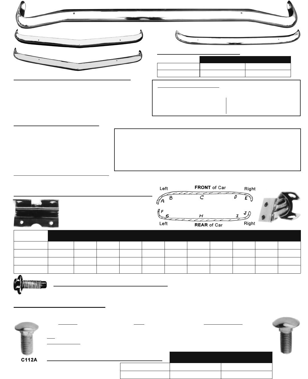 FRONT Bumper (60-69) Set of 6 C8223 6 oz./set REAR Bumper (60-69) Set of 7 C8224 6 oz./set
