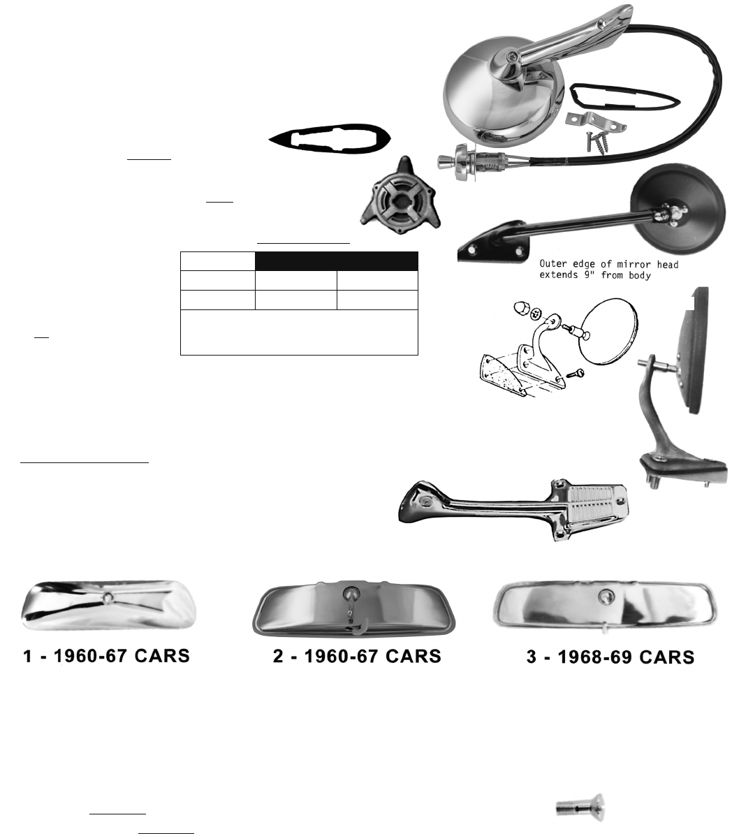 MIRROR TO ROOF SCREWS – Set of 3 screws that attach inside rear view mirror to roof. May not be original size head.