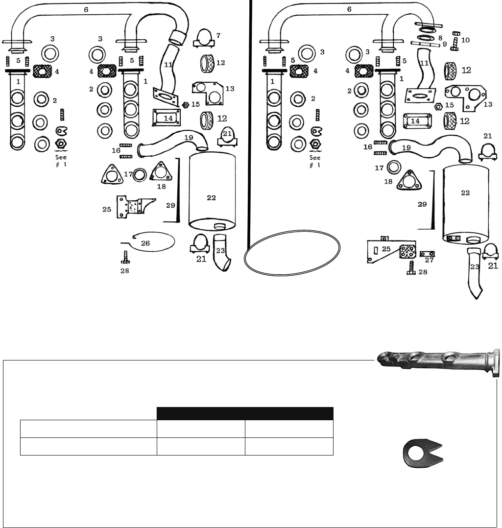 Exhaust Manifold Clamp: Holds manifold up. 1960–69 – (6) required. Available USED only. CU647XZ 4 oz./each