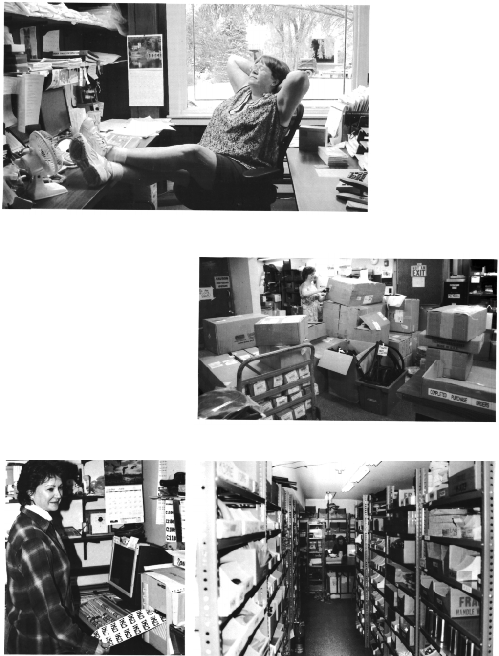 ![]() 418 Managerial Assistant: So this is what it's like to be boss; I could be good at this! Linda started in 1982 and takes phone orders, enters internet orders and deals with vendor invoices. She also loves to bring in baked goods for us. Building #2 – Receiving and Kits Cheryl coordinates all the receiving, stocking and making of kits. Photo shows 1 of the 6 aisles of "K" numbers, OVER 2500 parts that go into "Kits" we sell. We have OVER 2000 different "Kits". Some "Kits" (such as Gasket Sets) have OVER 60 different parts. Just 1600 square feet evenly divided between receiving and kits. We receive in all our parts, check the purchase order, verify the parts and number them. Complexity! Our kits can be made with parts we buy from outside suppliers items we manufacture or assemble on site and even include other "subkits". This complexity means that our computer has to review the numerical information each night to be able to generate all of the kits and purchase orders to replenish the depleted inventory. We want to say a special thank you to Tom Hanson of Whalley Computer. He started our custom computer programming in 1989 and has continued to improve it.