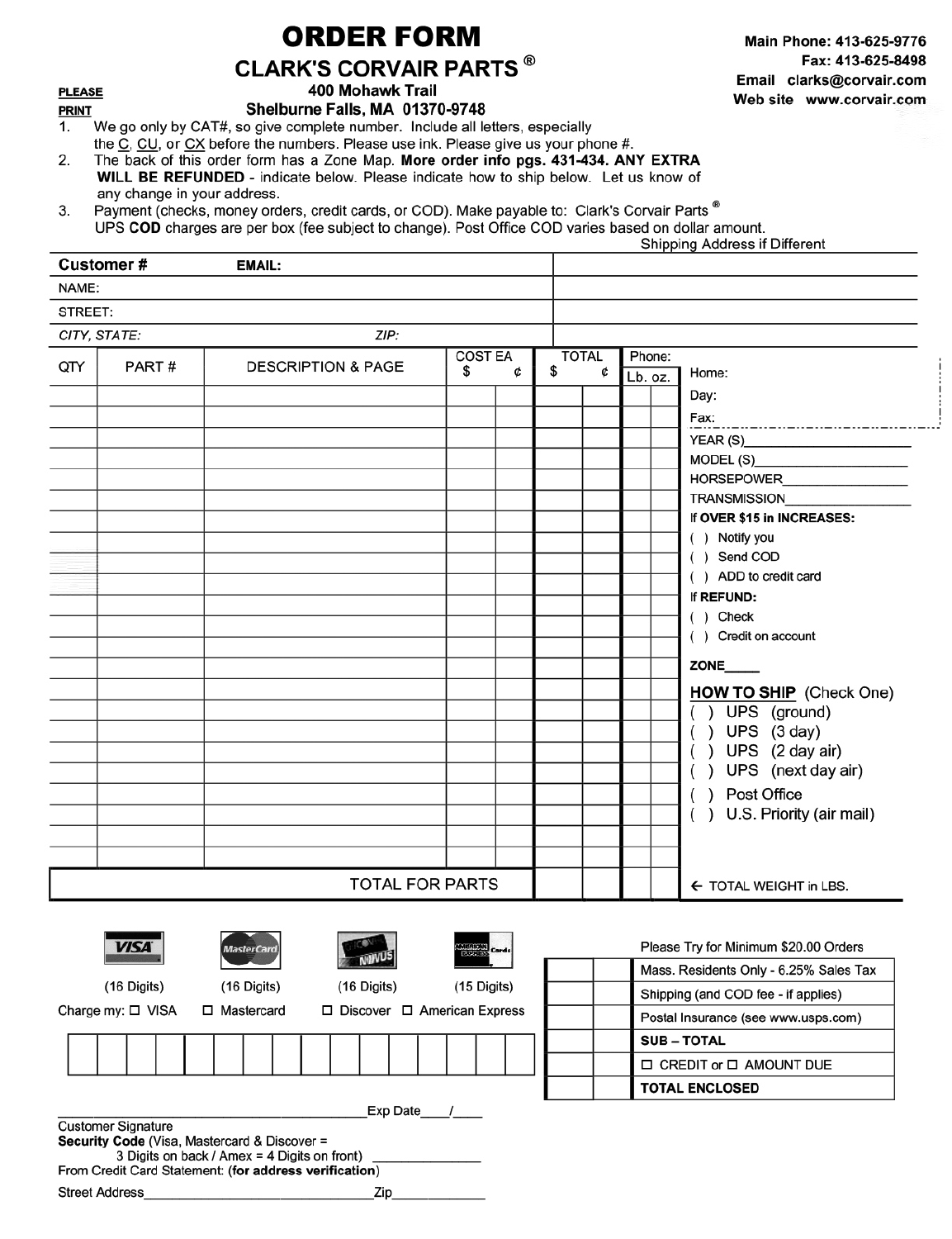 ![]() Copyright © 1978, 2022 Clark's Corvair Parts, Inc., "Clark's Corvair Parts" and the "Corvair Map" are registered service marks of Clark's Corvair Parts, Inc. 400 Mohawk Trail Shelburne Falls, MA 01370 USA All rights reserved. Main Office Phone: 413.625.9776 Fax: 413.625.8498 |