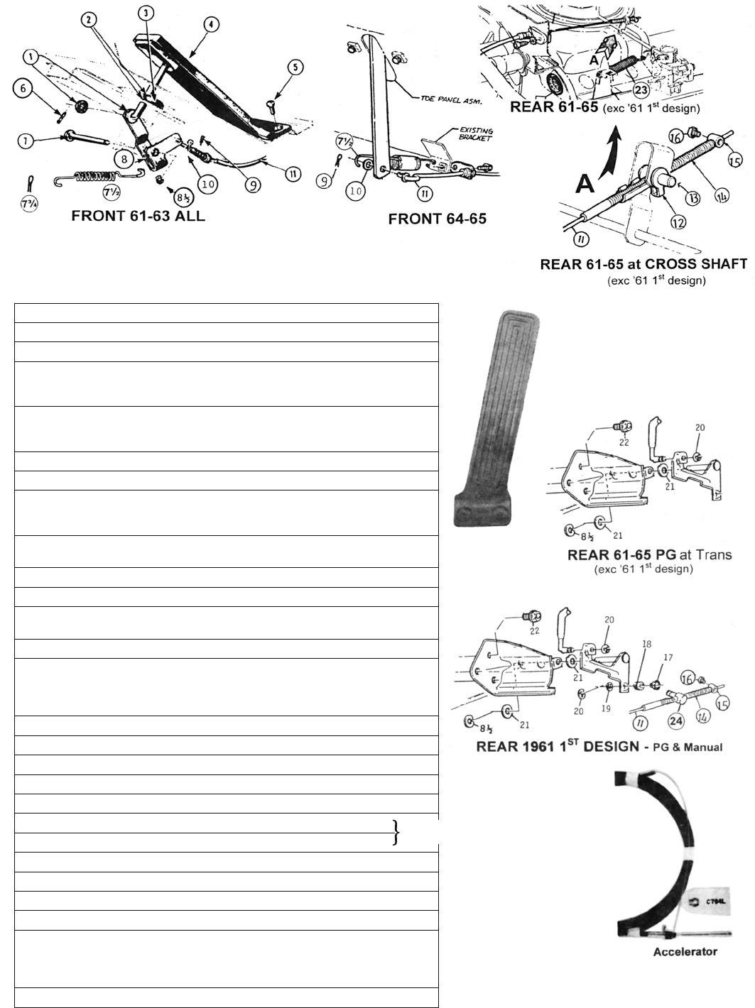 Accelerator Cable Note: 1961 – through about Feb 1961 used the "1st design" cable which stopped at the differential pivot.
