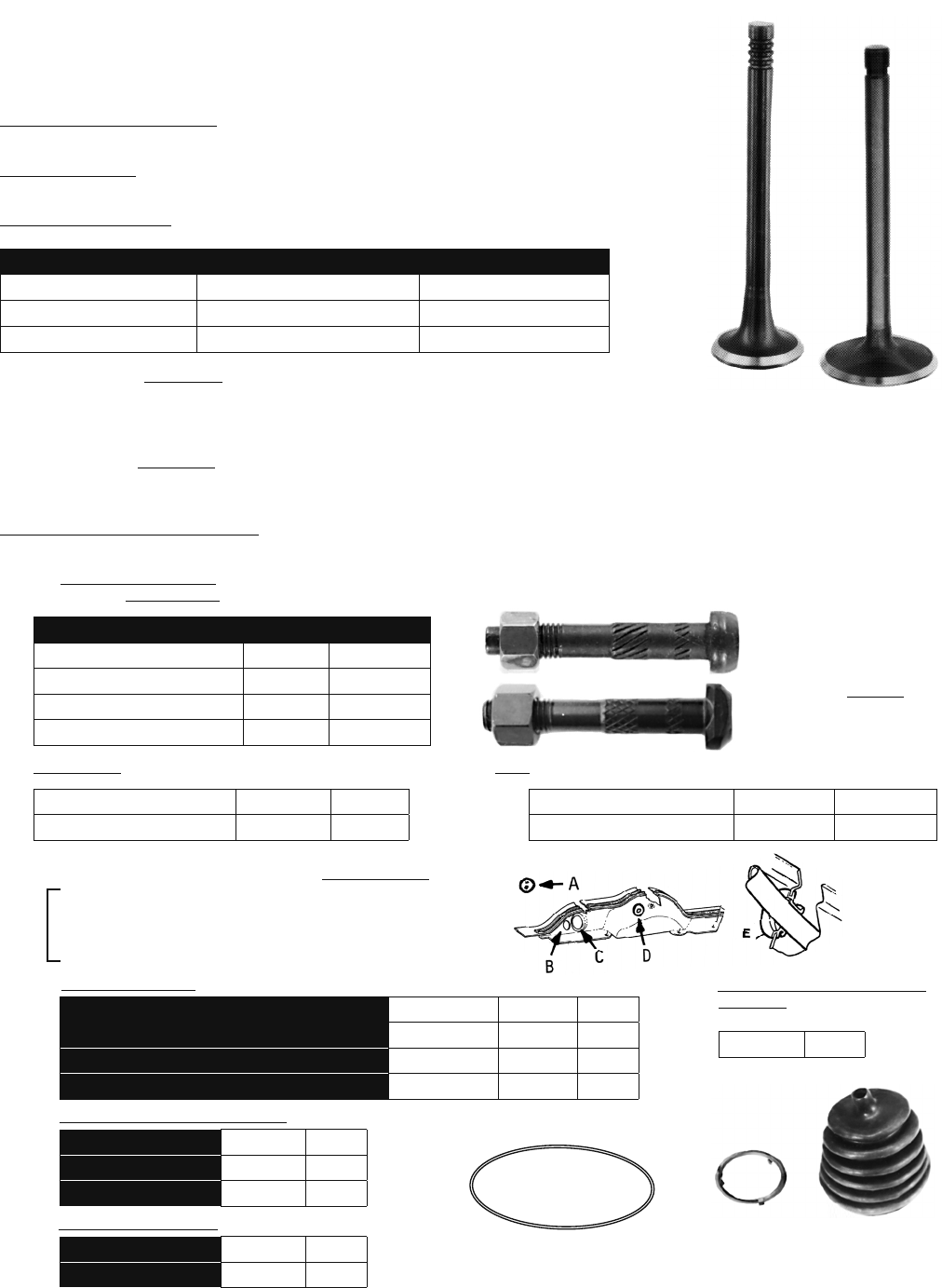iWARNING: Products on this page can expose you to a chemical, which is known to the St ate of California to cause cancer or reproductive harm. **For more information go to www.P65Warnings.ca.gov**7BHighest Quality INTAKE & EXHAUST VALVESCLARK valves are made by an ISO9001 certified manufacturer using the newest alloys to run safely with no lead gas at the higher temperatures of Corvalr engines. Head shape and all size specs were taken directly from "NOS" valves. The stems are held to .0005 of specs and the faces are cut with precision CNC machinery and checked with laser during production. The exhaust valves are made from a high nickel (JIS alloy) stainless. Good for 1600-1800 degrees. The end of the exhaust valves are "tip welded". This puts a softer material at the very end to reduce rocker arm wear. REAL TURBO VALVES - Same material and technology as used in todays Turbo engines plus they are TUFFTRIDED. TUFFTRIDING - A high performance dark surface hardening treatment which aids "oil retention" and yields 100,000+ miles with greatly decreased valve stem wear & guide wear. ALL CLARK VALVES listed are Tufftrided. Individually Wrapped - Since these valves are custom produced just for us, we requested individual protective packaging - another small but important detail. ALL 4 oz. each TUFFTRIDED INTAKE TUFFTRIDED EXHAUST60-69 ALL (exc. 140 & Turbo)C3020P C3022P140 HPC3021P C3023PTURBOC3020P C124RPWhy get NEW VALVES? My Machine Shop can just regrind! There are several advantages to our NEW VALVES. The main ones being that they are made from superior materials to exacting specs and also available tufftrided. You should also consider that your valve seats are probably going to be ground. Do you also want to grind the valves, making for a thinner valve head on a valve that may be 30 years old? Also, most Shops CANNOT grind the valves as accurately as a valve factory. Why Replace GUIDES? The valve stem can wear and the inside of the guides can wear. As one or both wear it allows the valve to "lash" around, causing even faster wear but even worse, not allowing the valve head to fall squarely on the valve seat. This leads to rapid wear on the face of the valve, valve seat and may cause the seat to loosen. CONNECTING ROD BOLTS - In 2001 GM doubled our cost on rod bolts and tripled the cost of rod nuts! We have found an excellent replacement bolt and heavy duty nut. Replace those fatigued bolts and nuts. Important Notes! 1. The NEW STYLE BOLT & NUT - are 3 grams heavier than the stock. We agree with Larry Claypool that this should have no affect but we both also SUGGEST they NOT BE MIXED on the same rod and If you put them on one rod you should also put them on the "opposing" rod. 1960-69 ALLARP ROD BOLT - eachC968 2 oz.ARP ROD NUT - eachC1132 1/2 oz.Set of 12 ROD BOLTS & NUTSC8632 2 lbs./SETSet of 12 ROD NUTSC1132A 6 oz./SET 2. ORIGINAL GM - If you must have GM, we only sell them now individually. GM style ROD BOLT - eachC968G 2 oz.GM style NUT - eachC1132G 1 oz.GM ROD BOLT & NUT - on top.REPLACEMENT BELOW (ARP)NEW NUT has a THICKER wall for added strength. ADDS about 3 grams.USED GM ROD BOLTS & NUTS - NOT SUGGESTED. USED ROD BOLT - eachCU3670 3 oz.USED NUT - eachCU3671 1 oz.Engine Grommets & "Boots" "A" please see page 235 for FULL LISTING of"B" applications and choices."C" - ACCELERATOR BOOT - The accelerator rod comes thru this rubber boot. Also order metal retainer. Fits all 61-69 Cars & FC'sRubber bootC100R 4 oz.Metal retainerC100X 2 oz.1961-63 original style (no metal retainer required)photo pg. 232C9723 4 oz.1960 original style (no metal retainer required)photo pg. 232C10063 4 oz."E" - POWERGLIDE DIPSTICK TUBE BOOT - REPRODUCTION1960 (NICE - not exact)C1710X 4 oz.1961-64 (not shown)C8449 6 oz.1965-69 (shown above)C7643 6 oz."F" - AXLE CHECK TUBE BOOT - (photo page 125)1964C8450 6 oz.1965 (grommet)C8452 2 oz."D" - POWERGLIDE MODULATOR LINE GROMMET - 1961-1969 ALL - Steel line to modulator goes thru this. C7364 2 oz.ENGINE DISCOUNT !see Blue pg. MK-2PLASTIC PLUGS Page 15C100XC100R