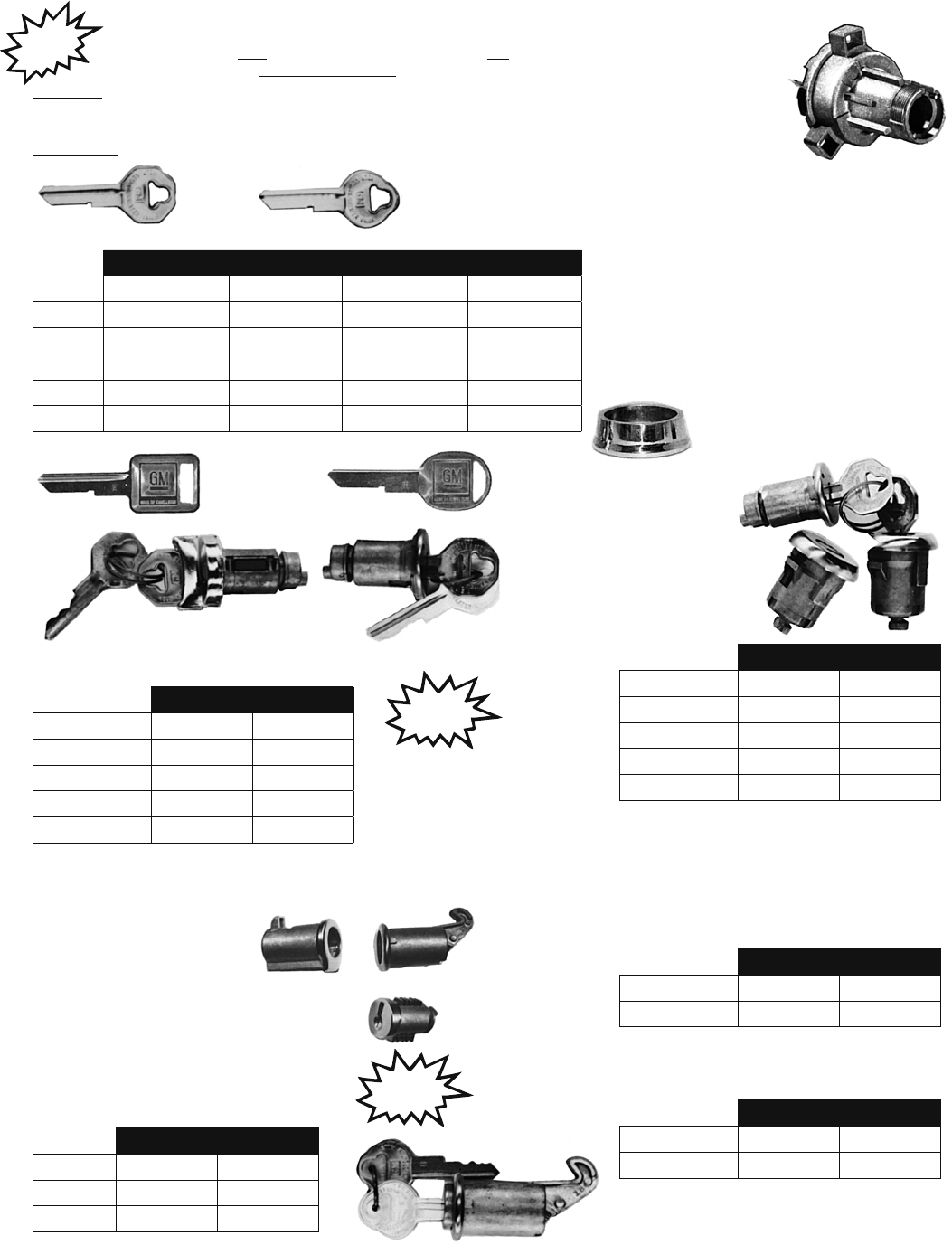 are supplied with "pear head" keys (60-68) and round (69) so you will not confuse with your ignition. Also some 1967-69 locks will have