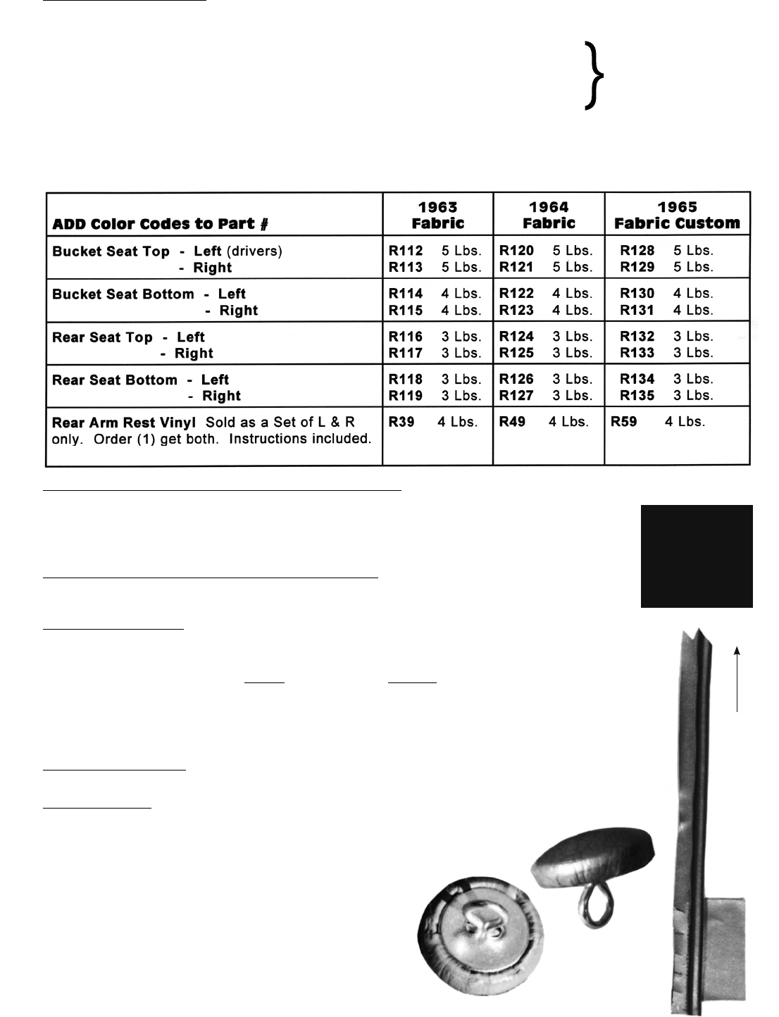 NOT included in any upholstery "Sets". Rare factory option. Photo page 16. R179 2 lbs.