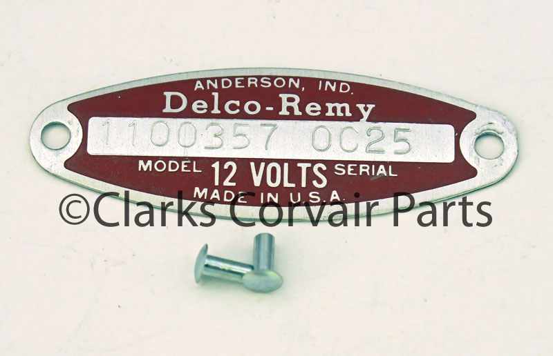 Part number C11385: 1960 GENERATOR TAG & RIVETS