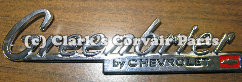 Part number C12628: EMBLEM-GREENBRIER BY CHEVY-63-64 FC *3 C571 CLIPS NEEDED