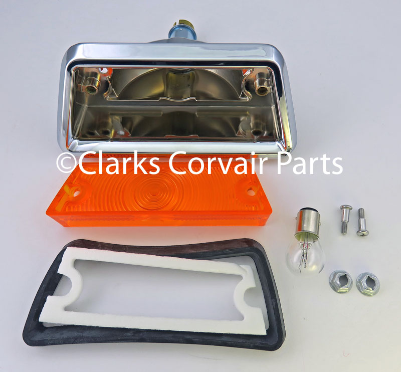 Part number CX1497 (NOS): DIRECTIONAL LIGHT UNIT-RIGHT-FRONT-65-69 -CHROME CASTING,GASKET,LENS,SCREWS