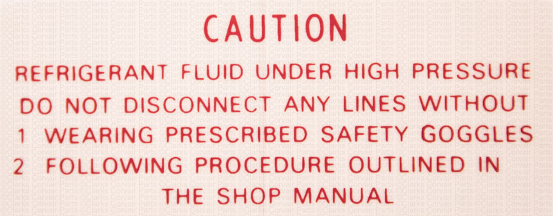Part number C13404: CAUTION REFRIGERANT FLUID WARNING DECAL