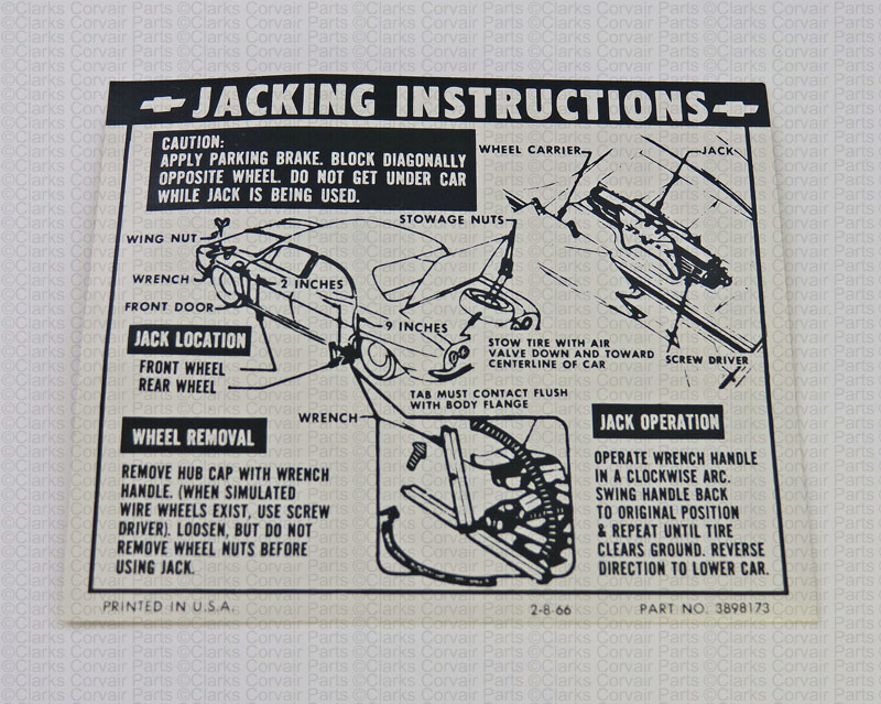 Copyright © 1978, 2018 Clark's Corvair Parts, Inc., "Clark's Corvair Parts" and the "Corvair Map" are registered service marks of Clark's Corvair Parts, Inc.