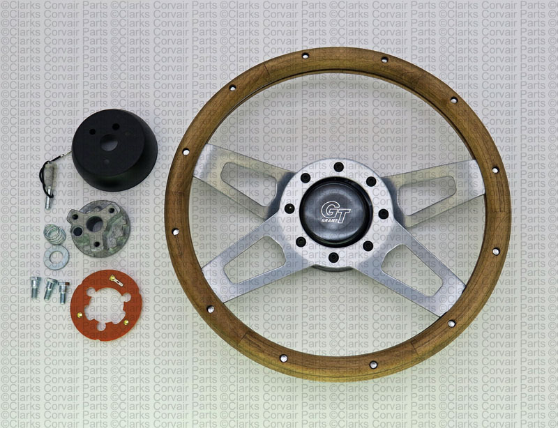 Part number C3138B: 64-66 WOOD 4 SPOKE SILVER STEERING WHEEL **DO NOT BO ADAPTOR-NO ETA**