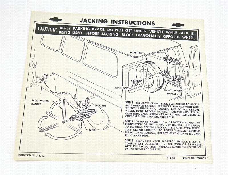 Part number C9542 (Other): 61-65 VAN (EXC RAMPSIDE) JACKING SHEET