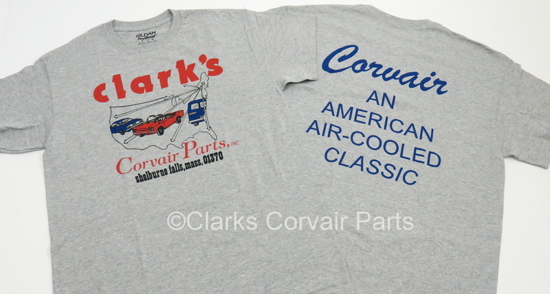 Part number C3970A: CLARK T-SHIRT-GREY-XXLARGE ON BACK SIDE: * "CORVAIR AN AMERICAN AIR-COOLED CLASSIC"