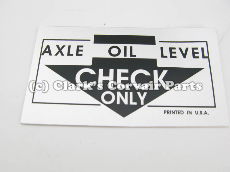 Part number C413: 64-65 AXLE OIL LEVEL CHECK DECAL