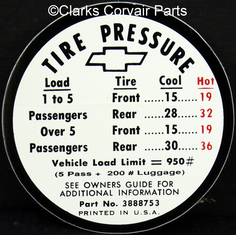 Part number C420A: 66 CT TIRE PRESSURE DECAL