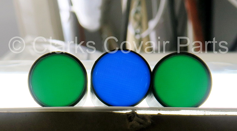Part number C4233B: 60-64 TURN SIGNAL LENSES IN TUBES-2GREEN & 1 BLUE HIGH BEAM(NOT ORIG-MODERN)EXC SPYDR