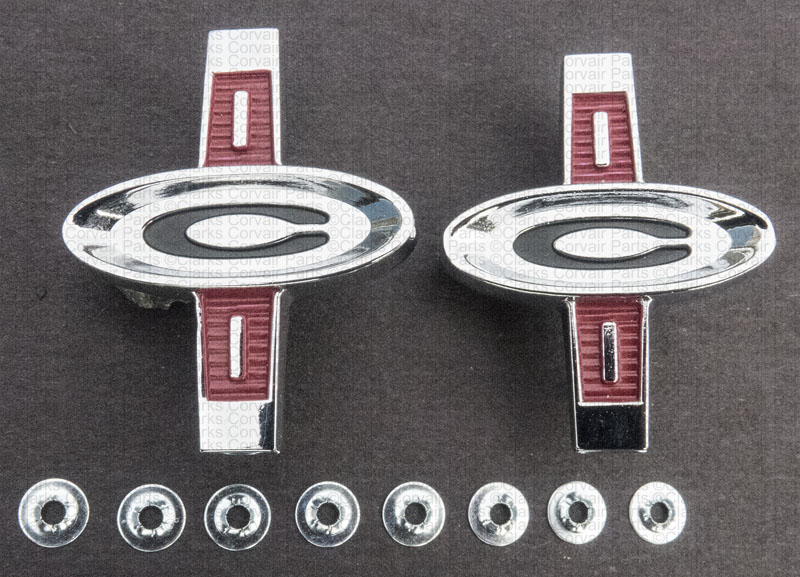 Part number C5927: 65-66 CORSA INSIDE DOOR PANEL EMBLEM** SET/2 WITH CLIPS