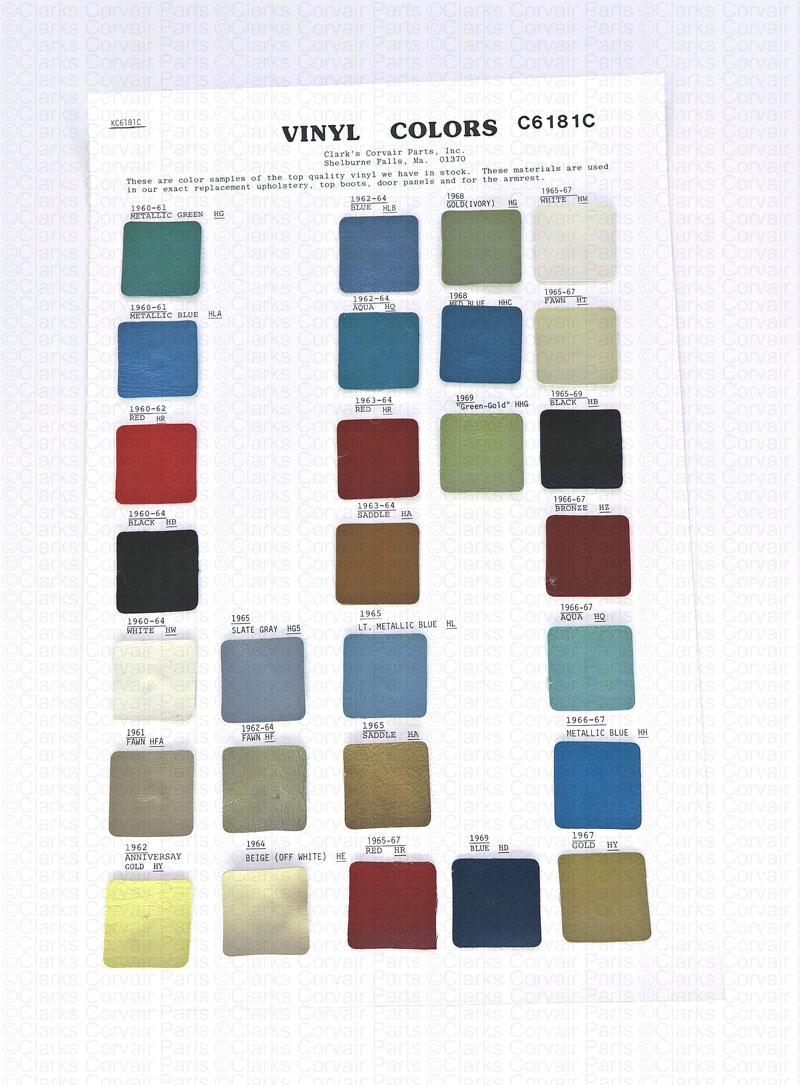 Part number C6181C: SAMPLE CHART-60-69 "MONZA" VINYL COLORS