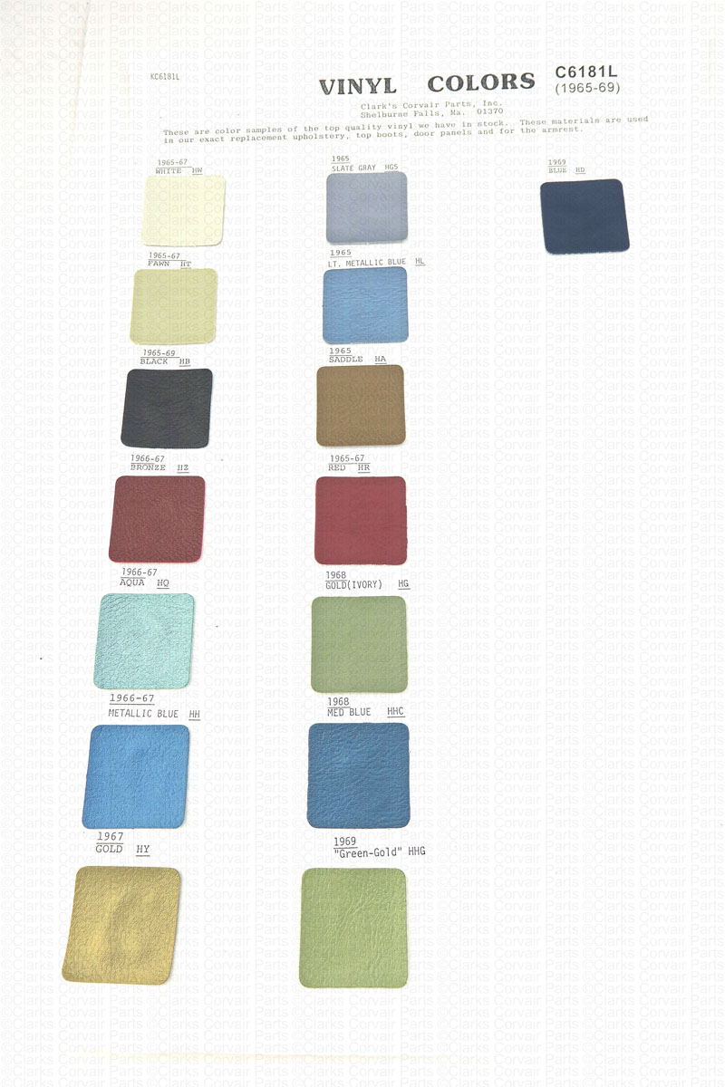 Part number C6181L: SAMPLE CHART-65-69 "MONZA" VINYL COLORS