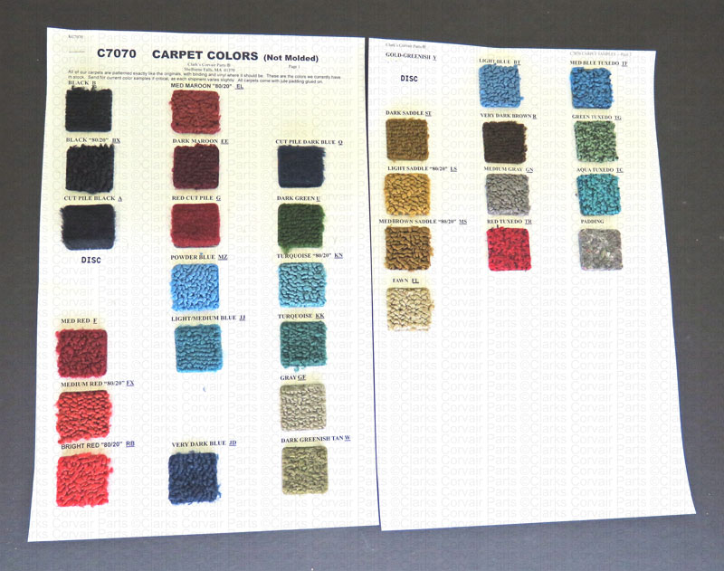 Part number C7070: SAMPLE CHART-CARPET-ALL COLORS **NOTE-MOLDED CARPET SAMPLES NOT INCLUDED