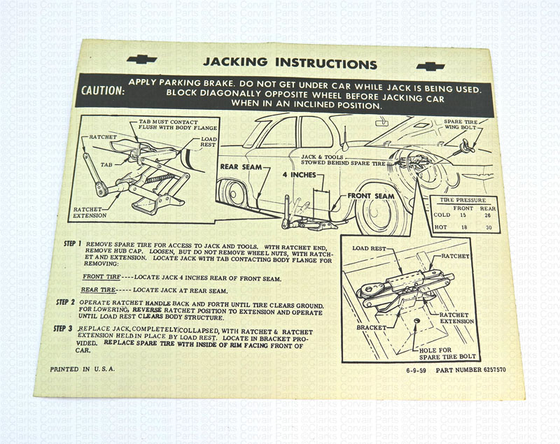 Copyright © 1978, 2018 Clark's Corvair Parts, Inc., "Clark's Corvair Parts" and the "Corvair Map" are registered service marks of Clark's Corvair Parts, Inc.