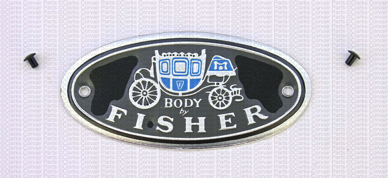 Part number C7366RL: 65-69 BODY BY FISHER EMBLEM WITH RIVETS EACH-FOR DOOR SILL #52 DRILL BIT = C7366RD