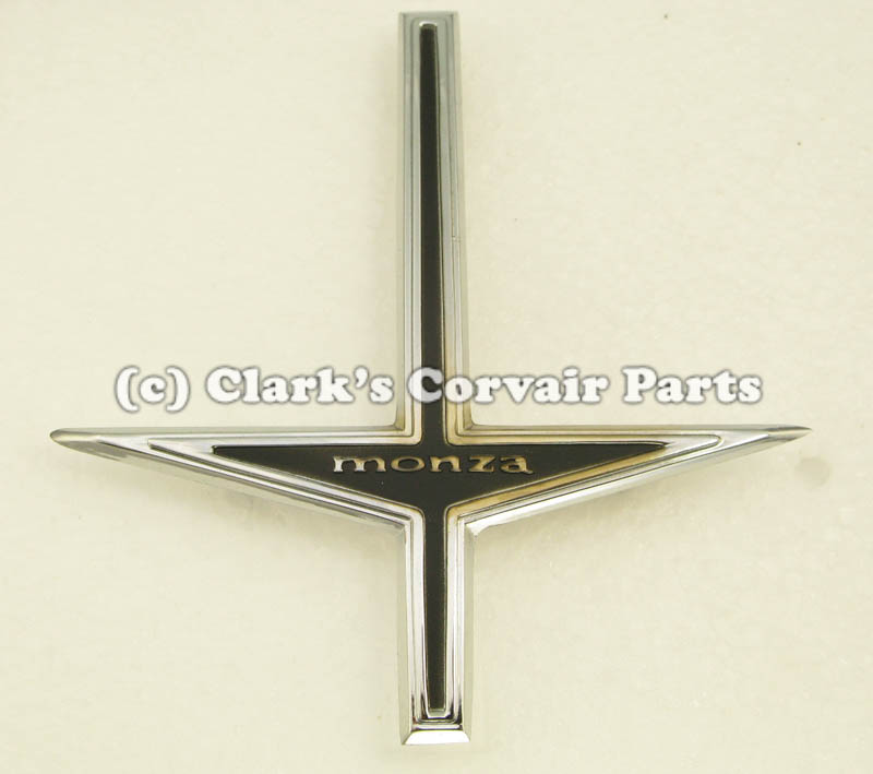 Part number C75: 66-69 MONZA CROSS EMBLEM-FRONT FENDER (3) CLIPS NEEDED-C571 EA, (10)CLIPS=C571A