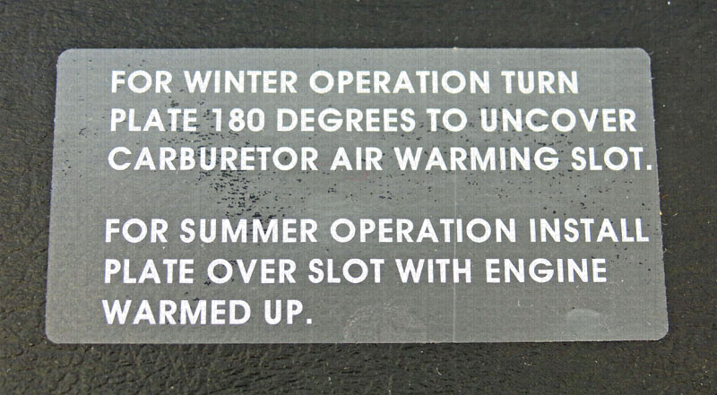 Part number C7516: DECAL-AIR COVER BELOW OIL COOLER (65-67 EXC SMOG)