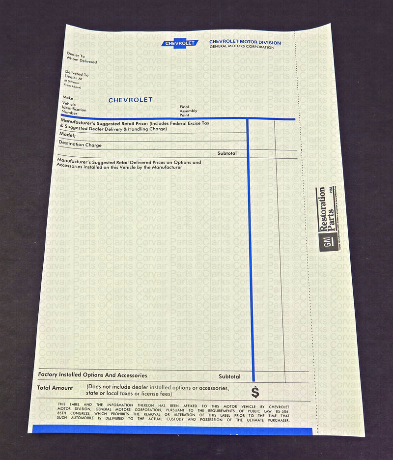Part number C8437: 66-67 WINDOW STICKER SHEET