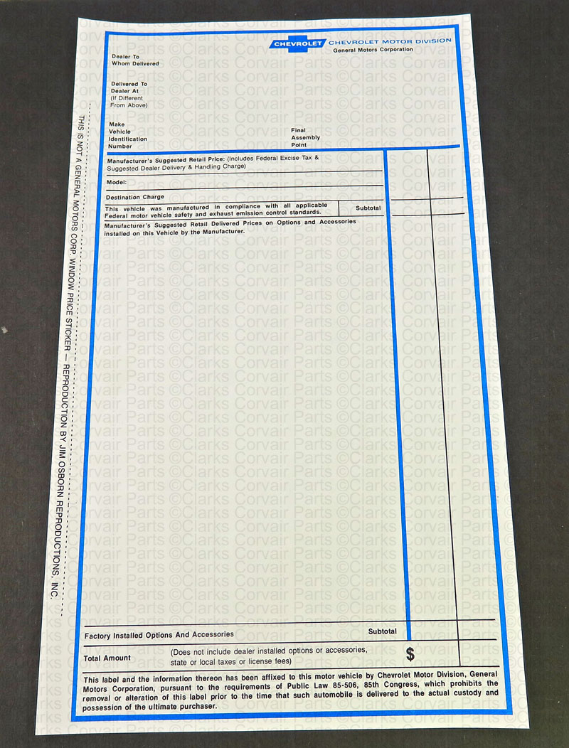 Copyright © 1978, 2018 Clark's Corvair Parts, Inc., "Clark's Corvair Parts" and the "Corvair Map" are registered service marks of Clark's Corvair Parts, Inc.