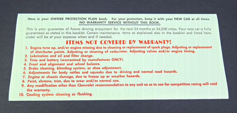 Part number C8443: 65-69 WARRANTY WARNING CARD