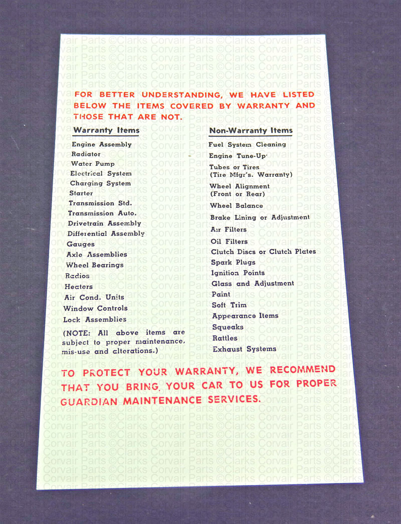 Copyright © 1978, 2018 Clark's Corvair Parts, Inc., "Clark's Corvair Parts" and the "Corvair Map" are registered service marks of Clark's Corvair Parts, Inc.