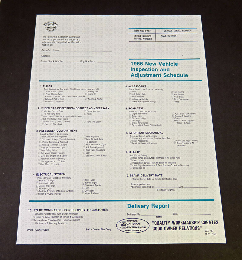 Part number C8486: 66 NEW CAR INSPECTION SHEET