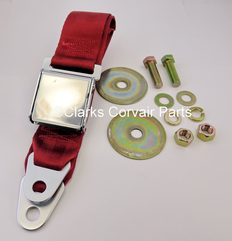 Part number C9190MR: FRONT & REAR SEAT BELT MEDIUM RED-WITH HARDWARE-SOLD EACH