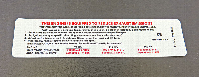 Part number C9549: 69 ALL EMISSION TUNE UP STICKER