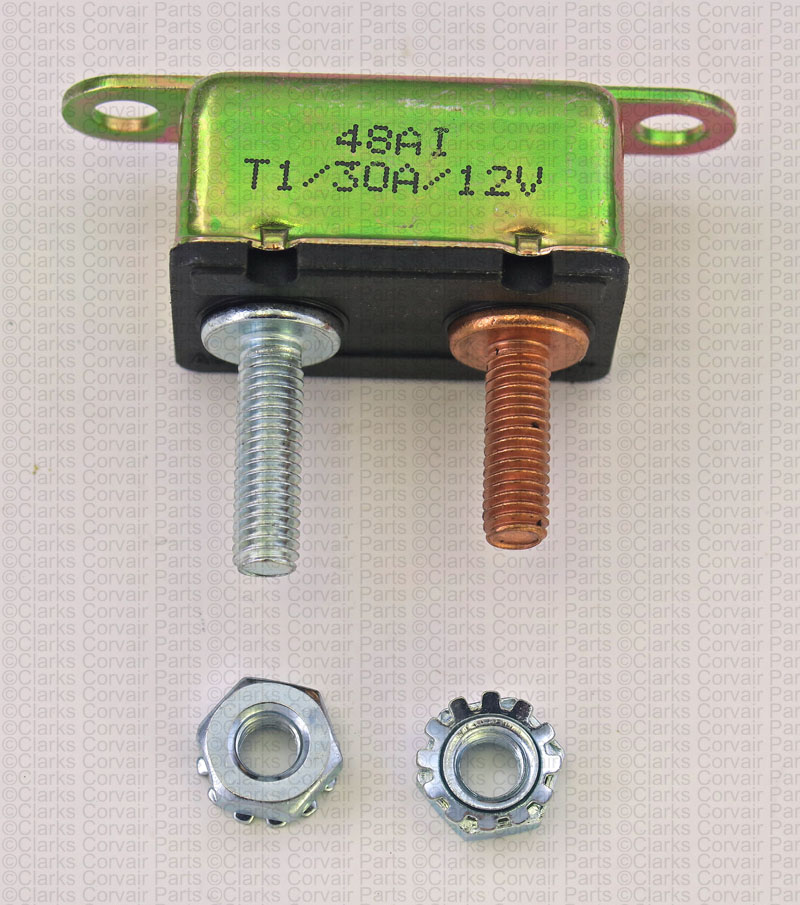 Part number C9696: "USEABLE" POWER TOP BREAKER 65?-69- 30 A SET OF 2 NUTS ,LWS & SCREWS =C9690