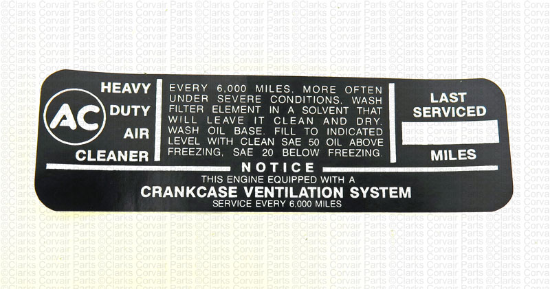 Copyright © 1978, 2018 Clark's Corvair Parts, Inc., "Clark's Corvair Parts" and the "Corvair Map" are registered service marks of Clark's Corvair Parts, Inc.