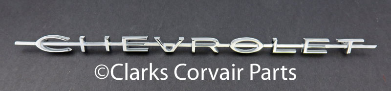 Part number C12604 (Regular): 1960 REAR ENGINE LID EMBLEM- "CHEVROLET" (4) CLIPS NEEDED-C571 (10)CLIPS=C571A